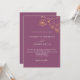 Une invitation de mariage moderne, élégante et minimaliste. Fond de couleur violet prune orné de fleurs dorées fausses. Personnalisez et ajoutez vos noms et détails de mariage.