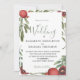 Invitation de mariage avec grenades et feuilles abondantes, la grenade célébrée est à la base de cette invitation de mariage moderne en Bourgogne et vert.