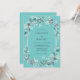 Un fond aquamarine doux met en valeur une délicate arche de feuillage de teal et d'argent atténués avec de subtiles fleurs blanches. Ce design éthéré évoque un sentiment de romance aérienne et de beauté naturelle discrète. Les éléments botaniques créent une atmosphère apaisante et élégante.