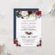 Invitation Mariage Botanique Floral Bleu Marine Rouge de Bour