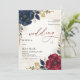 Un design floral richement coloré avec des fleurs marines profondes et bordeaux accentuées de feuillage doré brossé. Cet agencement botanique évoque une élégance classique et un charme romantique, parfait pour donner un ton sophistiqué à vos célébrations mariages. Les détails complexes et la palette de couleurs opulentes créent un visuel mémorable.