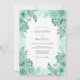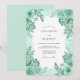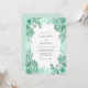 Cette conception présente une luxuriante composition de roses vert menthe et de feuillage délicat. La palette monochrome crée une esthétique propre et fraîche parfaite pour un événement printanier ou estival. Des feuilles aquarelles complexes et des fleurs douces ajoutent une touche romantique et aérienne au thème botanique.