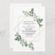 Faire-part de mariage avec une illustration de verdure d'aquarelle avec cadre géométrique sur un arrière - plan blanc. Personnalisez le texte noir.