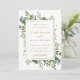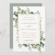 Ce faire-part de mariage est orné d'une aquarelle peinte de la végétation d'eucalyptus, de feuilles verts et d'un cadre rectangulaire en faux or. Pour une personnalisation plus avancée de cette conception, cliquez sur le lien "Customiser plus loin". Des articles correspondants sont également disponibles.