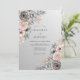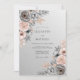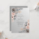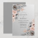 Cette conception présente un mélange sophistiqué de tons gris ardoise et de rose blush doux. Des roses et des anémones délicates à l'aquarelle sont accentuées par un feuillage cuivré, créant une esthétique romantique et sombre. Ces éléments botaniques sont disposés dans une composition équilibrée, parfaite pour un événement formel élégant.