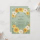 Un fond doux de sauge offre une toile délicate pour un arrangement botanique vibrant et débordant. Des fleurs délicates blanches et jaunes dorées, entrelacées de feuillage vert luxuriant, créent une atmosphère romantique et aérienne. Ce design évoque un sentiment de célébration sereine et de beauté naturelle.