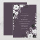 Ce design présente un contraste saisissant entre un fond mauve riche et des éléments botaniques blancs délicats. Des anémones blanches élégantes et des branches de feuillage délicates créent une esthétique sophistiquée et sombre parfaite pour un événement de fin de saison. La palette de pourpre profond est complétée par des feuilles grises douces et des accents charbon pour un look moderne et intemporel.