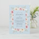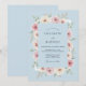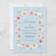 Ce design éthéré présente une palette de bleu clair, rose saumon et crème. Des roses peintes à l'aquarelle et un feuillage vert doux créent une atmosphère romantique pour un événement de printemps ou d'été. L'arrangement floral délicat entoure le centre, offrant une esthétique intemporelle et élégante pour tout couple.