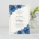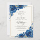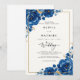 Des fleurs bleues royales luxuriantes et somptueuses traversent cette décoration, entrelacées de délicats accents dorés. Évoque un sentiment d'amour profond et d'élégance intemporelle. Parfait pour une occasion sophistiquée et mémorable.
