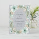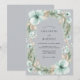 Cette conception sereine présente une délicate couronne aquarelle d'anémones vert menthe et de fleurs aqua douces. Accentuée par l'herbe de pampa plumeuse et le feuillage semblable au pin, l'œuvre d'art crée une atmosphère givré et éthérée. La palette aux tons frais et les motifs aériens de la nature évoquent une ambiance saisonnière sophistiquée.