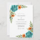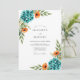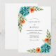 Cette création botanique présente des hortensias sarcelle vibrant à l'aquarelle associés à des pavots orange vif. Un feuillage vert luxuriant crée une esthétique naturelle et aérée parfaite pour un événement saisonnier. La palette de couleurs d'aqua profond et de terre cuite chaude offre un contraste saisissant. Idéal pour les couples à la recherche d'un thème floral élégant et coloré.