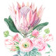 La belle fleur de protea roi en aquarelle. Un magnifique bouquet fait d'un thème simple et élégant appelé 'Protea en aquarelle' un choix exceptionnel pour votre grand jour. Assurez-vous d'obtenir le jeu complet
