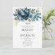 Cette invitation de mariage sur le thème botanique présente un élégant bouquet floral blanc, indigo, sarcelle et or qui entoure les détails de votre mariage. Donner à vos invités un excellent premier aperçu de votre mariage à venir, cette carte sera un ajout fantastique à vos événements de mariage.