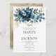Invitation Mariage bouquet floral à l'aquarelle indigo or