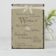 Pas votre faire-part de mariage à l'allure traditionnelle, faux débrayé look burlap avec arc blanc avec texte de style typographique en Personnaliser brun foncé pour convenir à votre style.