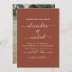 Photo Terracotta Burnt Orange Boho Mariage Simple Printemps ou été Photo sur Back Wedding Invitations - comprend une belle et élégante typographie script avec une couleur simple et classique moderne pour la célébration spéciale de mariage.