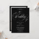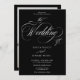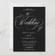Invitation de mariage calligraphiée chic et élégante blanc sur noir. Avec un beau script calligraphié à la brosse.