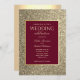 Invitation de mariage simple, moderne et luxueuse avec paillettes dorées et rouge bourgogne, parfaite pour des célébrations glamour et contemporaines.