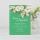 Un script classique botanique peint à la main, vert, rose, blanc et vert menthe, avec cadre doré invitation mariage campagnard floral.