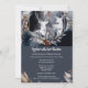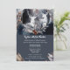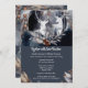 Un design élégant et élégant sur un arrière - plan bleu ardoise très foncé avec la belle silhouette aquarelle de deux cerfs debout devant une lune foncée encadrée par des bourgeons et des feuilles gris et marron foncé. Elles sont bordées à chaque extrémité par de jolies aiguilles de sapin de couleur automne et des baies de feuillage. Si vous vous mariez en hiver, faites une merveilleuse région hivernale, automne rustique | automne ou forêt bois thème mariage alors cette illustration est parfaite pour vos besoins.