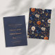 Une belle faire-part de mariage simple avec une aquarelle bohème fleurie sur le dos et une police minimale élégante sur l'avant. Modifiez facilement ce modèle aux détails de votre mariage souhaité. Simple Rust Blue Mariage campagnard Français Invitation.