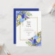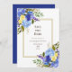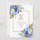 Vos invités adoreront cette beauté bleu classique, aquarelle. De la Collection Bleue Carolina, ce bleu d'été, bouquets de bord floral se trouve dans les coins supérieur gauche et inférieur droit, et cravate avec un cadre double or.
