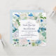 Ce faire-part de mariage carré aux fleurs blanches classiques est parfait pour un mariage de printemps. L'élégante décoration florale est composée de roses blanches et d'ivoire, de pivoines et de chrysanthèmes, avec des touches de fleurs d'aquarelle bleu périvent et de feuillage vert.