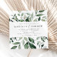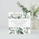 Élégantes invitations de mariage carrés avec une verdure d'aquarelle luxuriante bordant vos détails mariages avec un arrière - plan blanc. Les invitations de mariage verdoyantes modernes s'inversent pour montrer un arrière - plan vert foncé solide. Conçu pour coordonner avec notre collection de mariages de verdure Abondante.