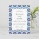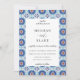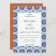 Magnifique motif de cadre en carreaux géométriques espagnols bleus et rouille, invitation de mariage. Le dos de l'invitation présente une couleur rouille tendance unie. Les styles et la couleur de la police peuvent être personnalisés.