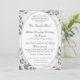 Ce design englobe l'essence de l'élégance. Une image arrière - plan rose champagne de dentelle délicate entoure votre texte qui est affiché dans une police nuptiale couleur argent et encerclé par un ovale couleur argent. Le texte suit le format catholique traditionnel pour un faire-part de mariage. Tout le design est encadré par une bordure argentée. Idéal pour un mariage traditionnel.