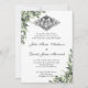 Personnalisez nos magnifiques invitations de mariage catholiques traditionnelles avec un beau dessin à la ligne noire et blanche de la Sainte Famille, Jésus, Marie et Saint Joseph et une gerbe d'eucalyptus dans chaque coin. Tout le texte et les polices peuvent être modifiés.