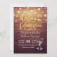 Mariage Célébration / Bridal Shower Invitation Cartes Modèle - Élégant Script or, Lunettes de Champagne Vintages et lampes à cordes sur Rustic Wood Arrière - plan. Un design parfait pour votre grand jour. Tous les styles de texte, couleurs, tailles peuvent être modifiés selon vos besoins !