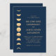 Ajoutez une touche d'élégance cosmique à votre événement avec notre Faire-part de mariage Celestial moderne. Immergez-vous dans la simplicité enchanteresse de notre design, reflétant la magie fascinante des corps célestes. Notre design à la fois tendance et intemporel présente une série de phases de lune artistiquement crées en or sur un décor bleu marine saisissant. Cette touche d'or ajoute une touche de chaleur et de charme scintillant à la base bleue cool de minuit, renforçant encore l'allure accueillante de la pièce. Le design maintient une approche minimaliste, ce qui permet aux éléments célestes de briller vraiment. Vous pouvez facilement personnaliser selon vos besoins, en vous assurant que chaque pièce reflète votre style unique.