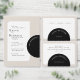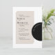 Un cercle simple avec du texte incurvé chevauche les détails du mariage encadré.