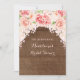Cartes d'invitation personnalisées pour une fête de mariage avec un motif de bois marron rustique et de jolies fleurs aquarelles roses pastel vintage.