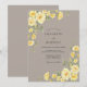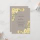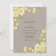 Ce design présente une palette sophistiquée de roses jaunes pâles et de délicates fleurs de prairie qui se déversent sur un fond taupe atténué. L'art aquarellé évoque une ambiance sereine et raffinée, parfaite pour un événement printanier ou estival. La verdure élégante et les grappes florales douces créent une esthétique équilibrée et inspirée de la nature.