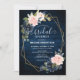 Invitation de mariage géométrique avec fleurs en bleu marine foncé avec un bouquet élégant de bleu marine, bleu roi, blanc, rose blush et feuilles d'eucalyptus vert sauge et un cadre géométrique neutre avec éclat élégant. N'hésitez pas à me contacter pour toute aide de personnalisation ou si vous avez besoin d'un autre produit avec ce design.