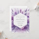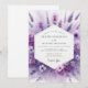 Éprouvez une atmosphère romantique avec ce design à l'aquarelle éthérée. Des lavis doux de lavande, de lilas et de violet profond créent une scène florale de rêve. Des brins de lavande en fleurs et de fleurs sauvages délicates jaillissent des bords, évoquant le charme d'un pré ensoleillé. Cet arrangement artistique est parfait pour une union printanière ou estivale.