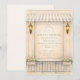Une décoration de mariage romantique et douce, inspirée d'une élégante vitrine de magasin de jardin, avec des fleurs délicates, des tons neutres chauds et un charme européen vintage. Les détails de la marquise rayée et de la lanterne classique évoquent une célébration intime de cour, parfaite pour une réunion de mariage raffinée et accueillante.