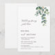 "Rien de fantaisiste, juste de l'amour" invitation de mariage décontractée. Cette élégante invitation de mariage contemporaine minimaliste en forme d'arche présente des feuilles d'eucalyptus peintes à l'aquarelle sur fond blanc.