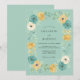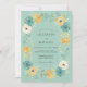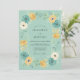 Un design champêtre fantaisiste avec des fleurs turquoise douces, jaune doré et crème. Une verdure délicate s'entrelace partout, créant une atmosphère romantique et enchanteresse. Parfait pour une union inspirée de la nature.
