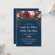 Invitation Mariage Champêtre Rouge Bordeaux et Bleu Marine Fl