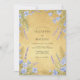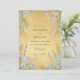 Ce design présente un fond chaud et doré ocre qui évoque un champ ensoleillé. De délicates pousses de lavande violette et de fleurs de lin bleu clair sont superposées à des herbes sèches vaporeuses pour un look naturel. La palette de jaune moutarde et de pervenche crée une esthétique sereine et rustique, parfaite pour une cérémonie en plein air à la campagne.