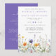 Cette conception présente une bordure colorée de fleurs sauvages aquarellées dans des tons de pourpre, d'or, de vert et de bleu.