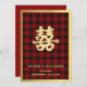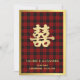 Conception spéciale pour un thème écossais Mariage chinois. Ce design présente le symbole "Double Happiness" dressé contre un motif écossais écossais. Le "Double Bonheur" orthographié xi ou "hsi" en mandarin et prononcé "shuang-xi" est un personnage chinois bien connu utilisé traditionnellement en mariage chinois comme symbole d'amour, de bonheur et de chance pour le couple nouvellement marié. L'utilisation de la couleur rouge est une couleur qui est tout aussi bien une couleur populaire dans la culture chinoise, qui symbolise la chance, le bonheur et la joie. Alors que la couleur de l'or symbolise la richesse et la prospérité.