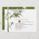 feuilles orientaux en bambou en vert jade et blanc avec un double cercle de bonheur rouge symbole sur un arrière - plan de couleur solide. Un mariage moderne, sobre et chic à thème asiatique, contemporain et classe.