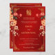Ce faire-part de mariage chinois traditionnel présente un cadre asiatique doré, des pivoines rouges, pêche et crème et un double symbole de bonheur artistique doré sur un arrière - plan rouge chatoyant. Avec un texte chinois traditionnel à l'envers.