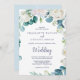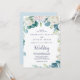 Cette carte de faire-part de mariage aux fleurs blanches classiques est parfaite pour un mariage de printemps. L'élégante décoration florale est composée de roses blanches et d'ivoire, de pivoines et de chrysanthèmes, avec des touches de fleurs d'aquarelle bleu périvent et de feuillage vert.