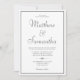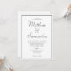 Invitation de mariage classique, formelle et élégante, avec un design traditionnel avec une bordure et un formulaire texte formel avec des noms de calligraphie script. Tout le texte est éditable et imprimé dans une couleur gris foncé qui peut bien fonctionner avec les différents types de papier disponibles pour une finition de luxe. Le dos peut être laissé blanc ou customisé avec du texte ou une photo en cliquant sur le bouton pour modifier la conception. Des produits de suite invitations correspondants sont disponibles.
