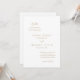 Elégante invitation de mariage avec un design typographique simple et minimal. Accents mots sont dans une typographie de script et la disposition est décalée pour une touche moderne. Le modèle contient du texte au verso pour une invitation tout en un, ou vous pouvez supprimer le texte pour laisser le verso vide. Le thème de couleur est or et blanc et peut être modifié dans l'outil d'édition de conception. Ce design est parfait, que vous ayez un mariage informel ou formel.